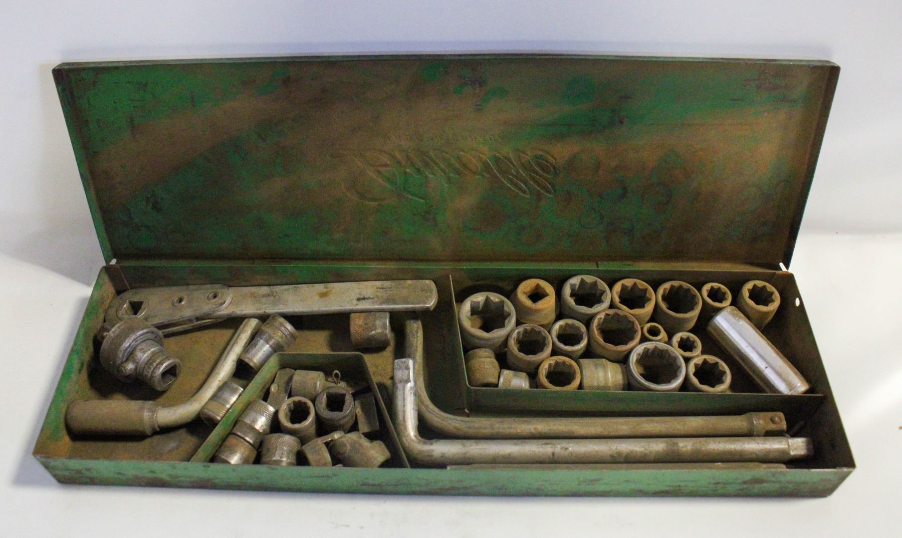 LOT SOCKET WRENCH WITH SOCKETS IN METAL CASE