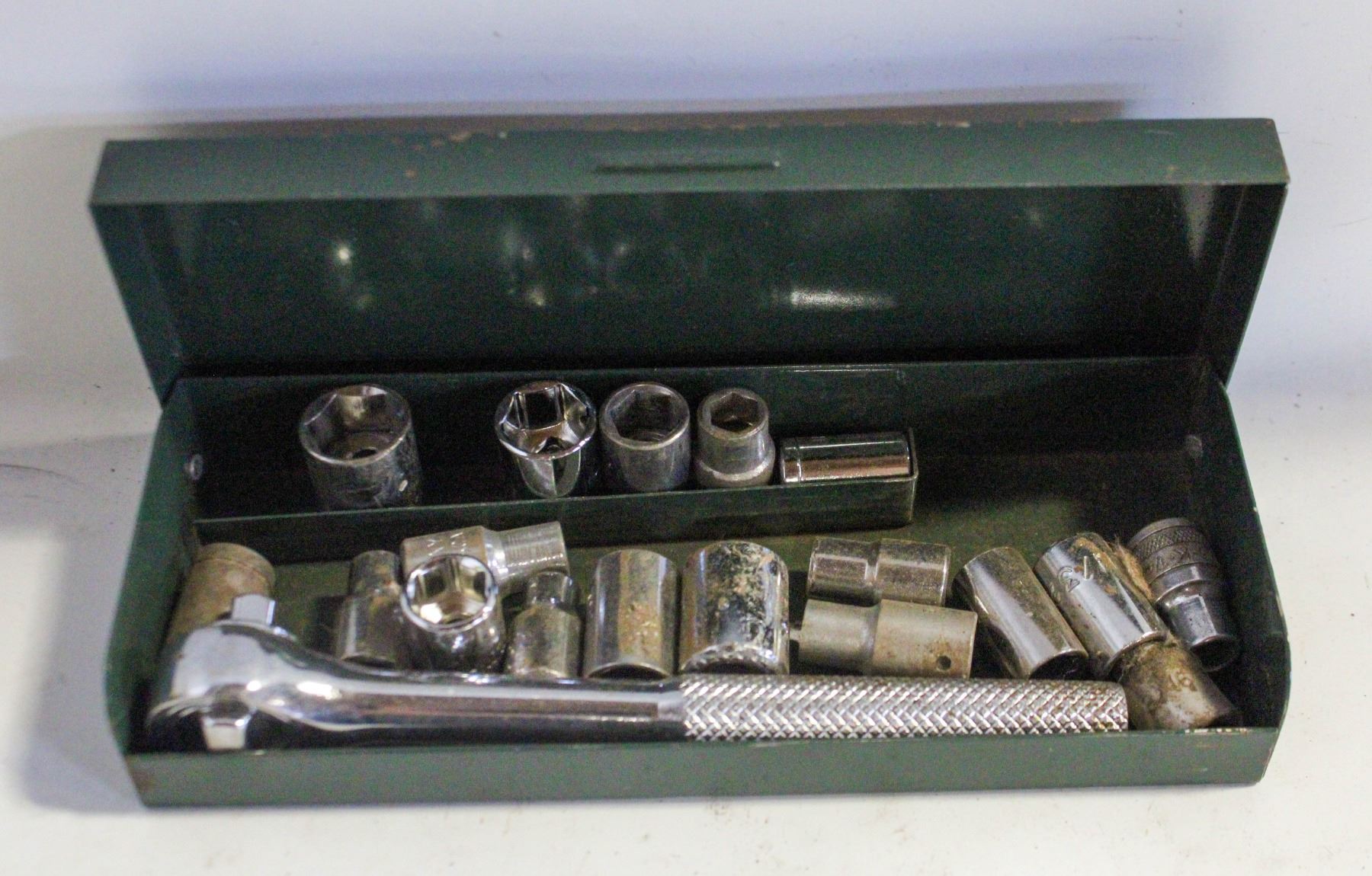 LOT SOCKET WRENCH WITH SOCKETS IN METAL CASE