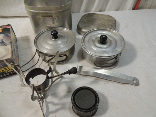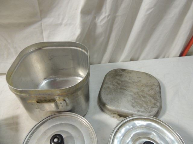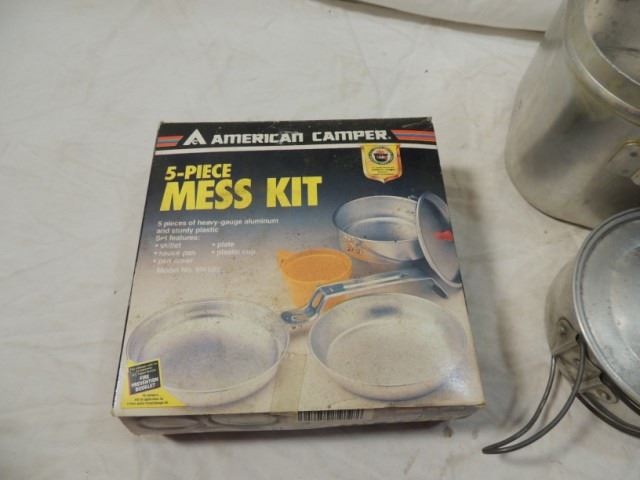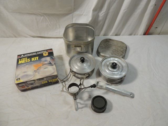 ONE VINTAGE MESS KIT AND A SECOND NEWER MESS KIT AS SHOWN.