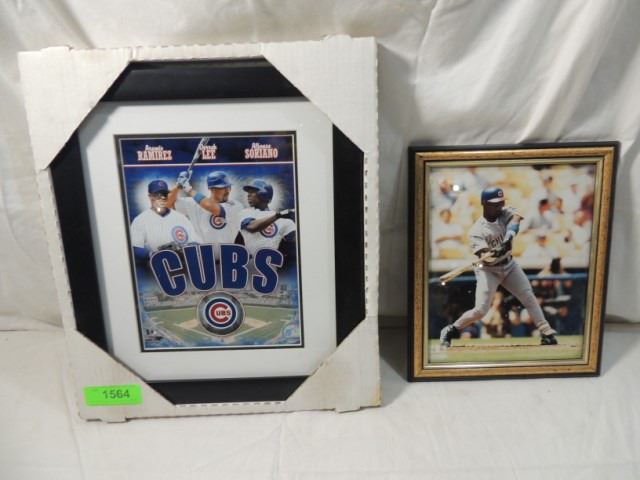 NICE PIECES FOR ANYONE'S MAN CAVE. CHICAGO CUBS BASEBALL FANS FRAMED PHOTOGRAPHS. OFFICIAL. 8" X 10" AND 11" X 13". NICELY FRAMED. AS SHOWN. BOTH FOR ONE MONEY!!