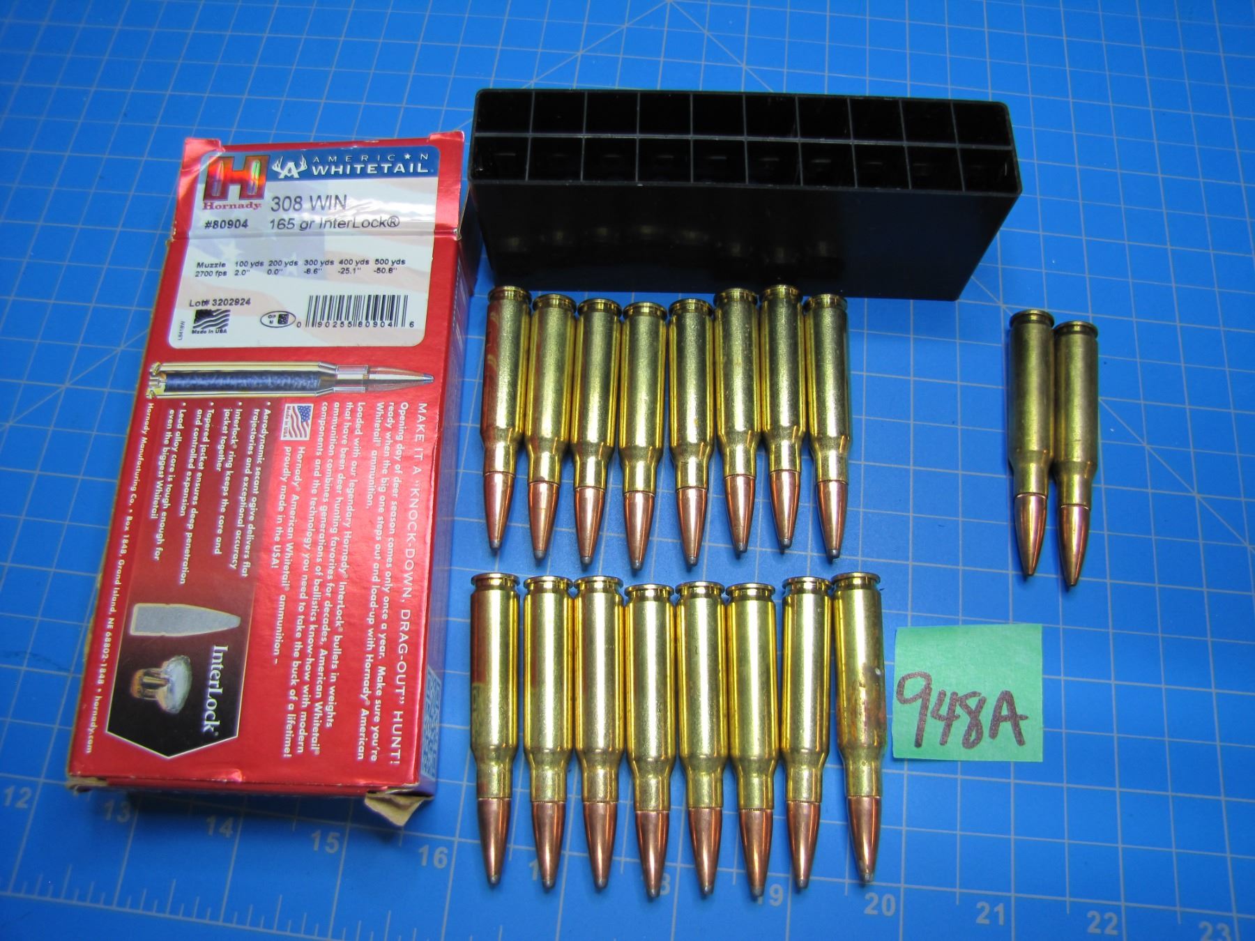 LOT W/ 16 ROUNDS ( 15 look good 1 is corroded ) HORNADY308 WIN & 2 MISC 308 WIN