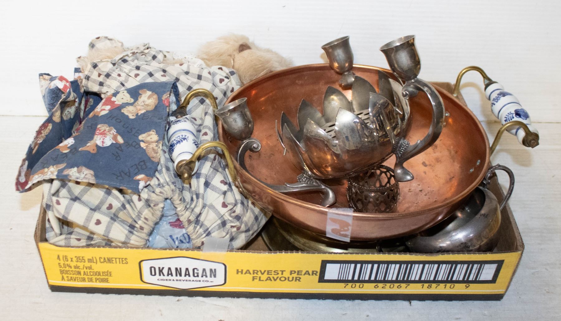 LOT WITH COPPER BOWL, FLOWER FROG, TEDDY BEAR