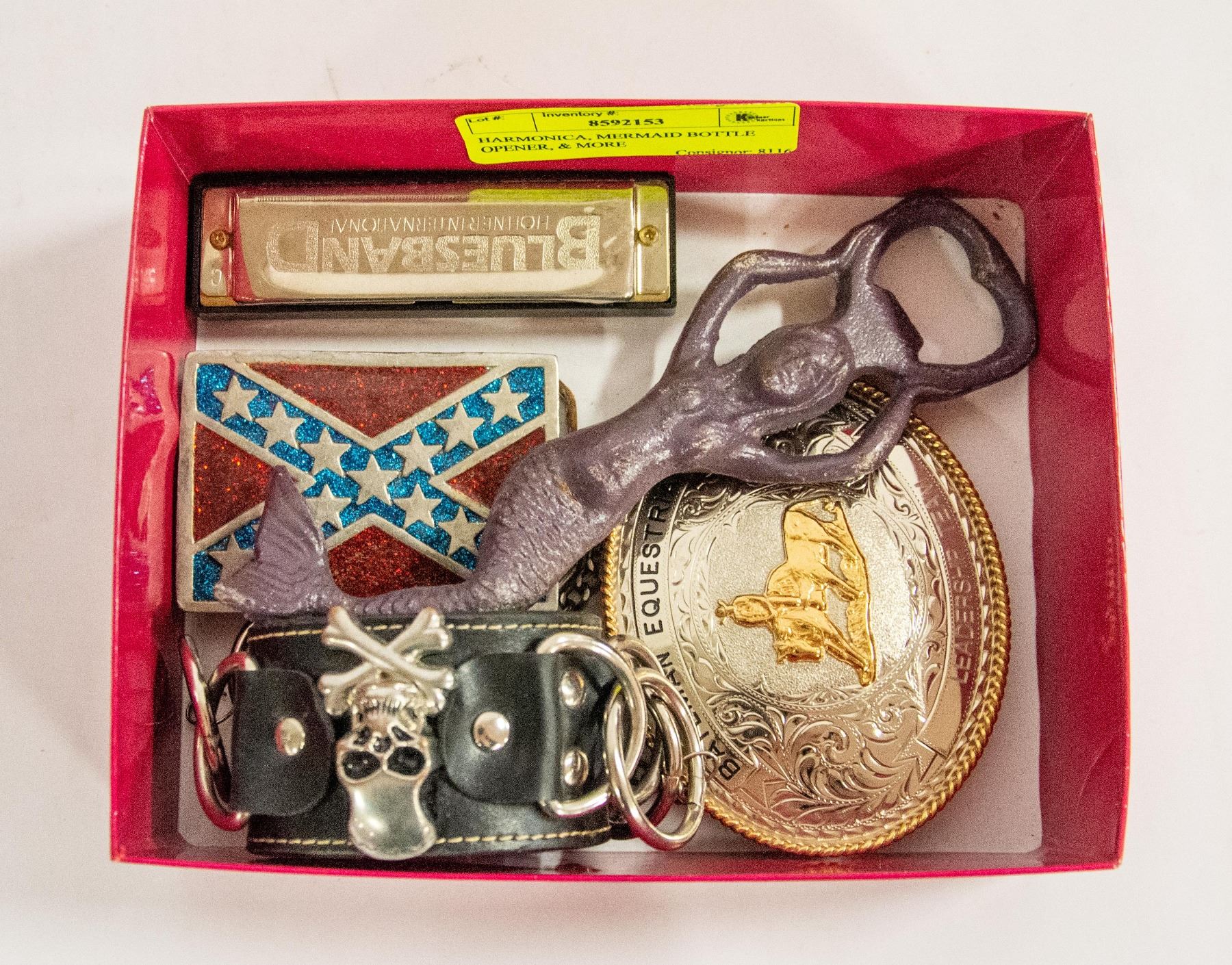 LOT WITH HARMONICA, MERMAID BOTTLE OPENER & MORE