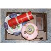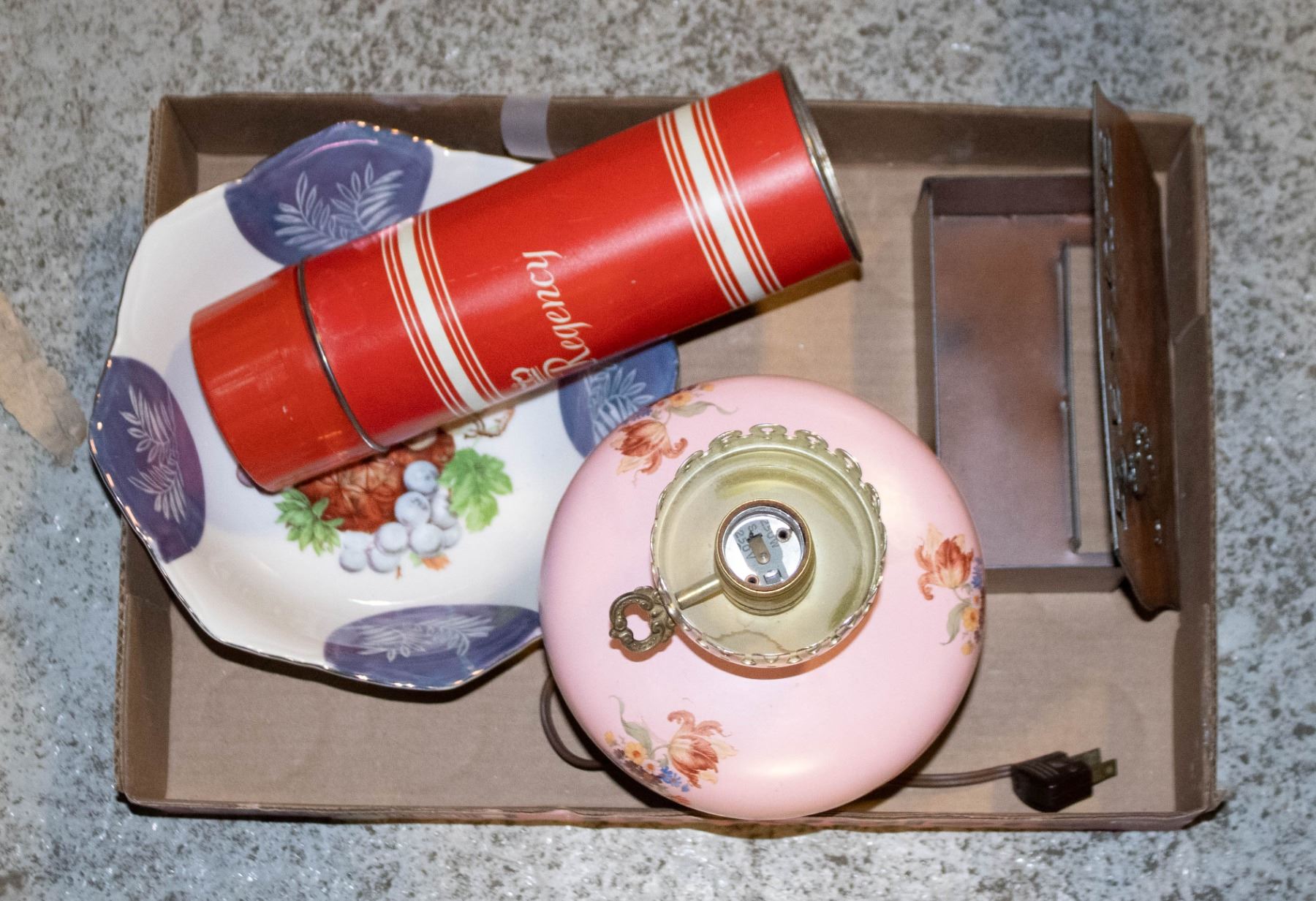 LOT WITH LAMP, THERMOS, BOWL AND RECIPE BOX