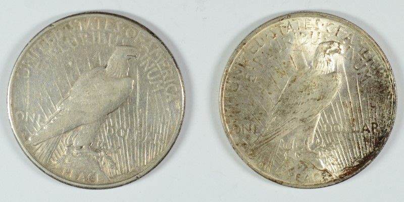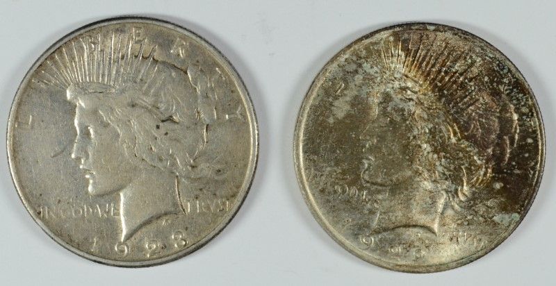 LOT of 2 - PEACE SILVER DOLLARS, 1922 AU, 1923-S VF