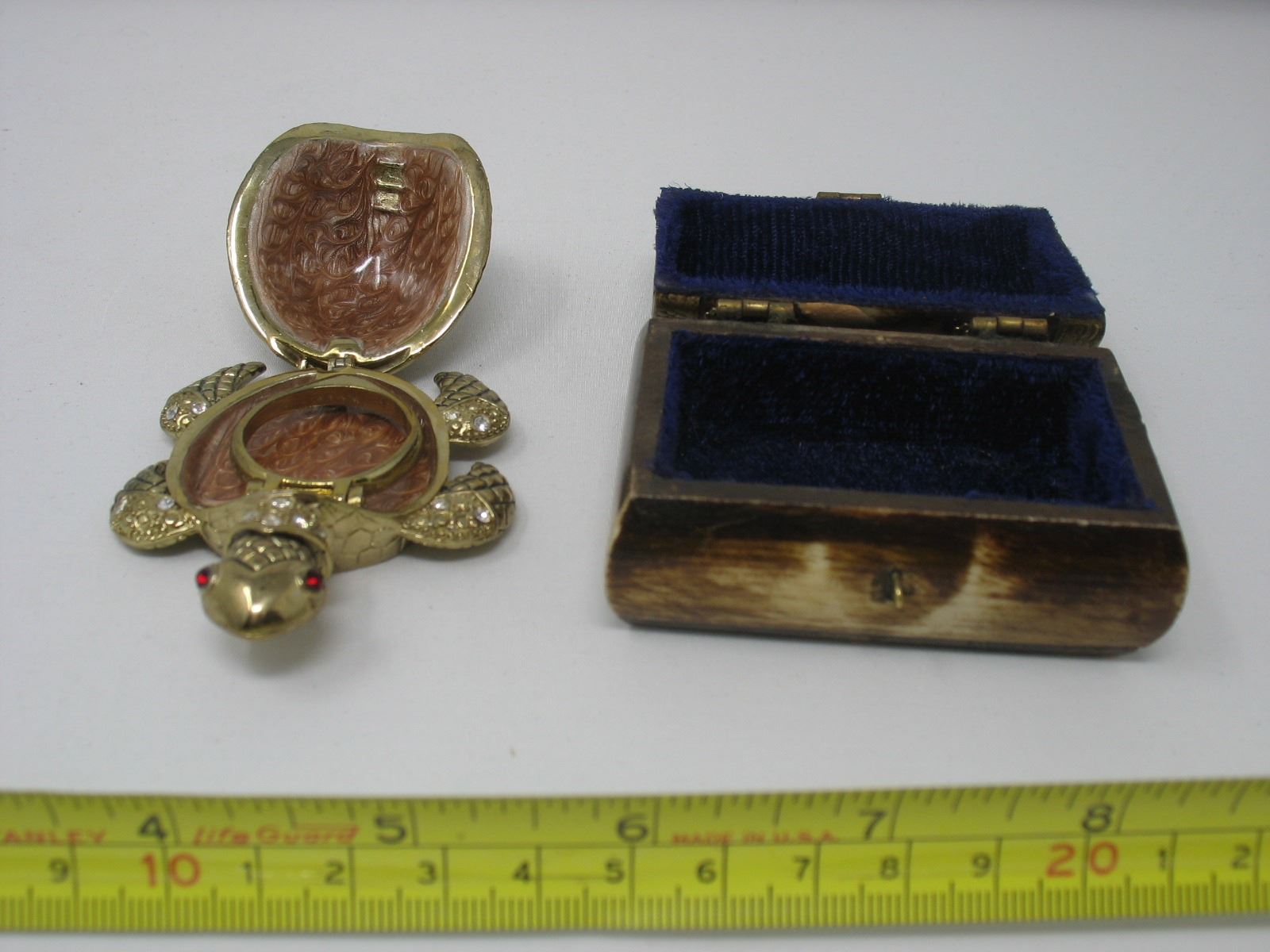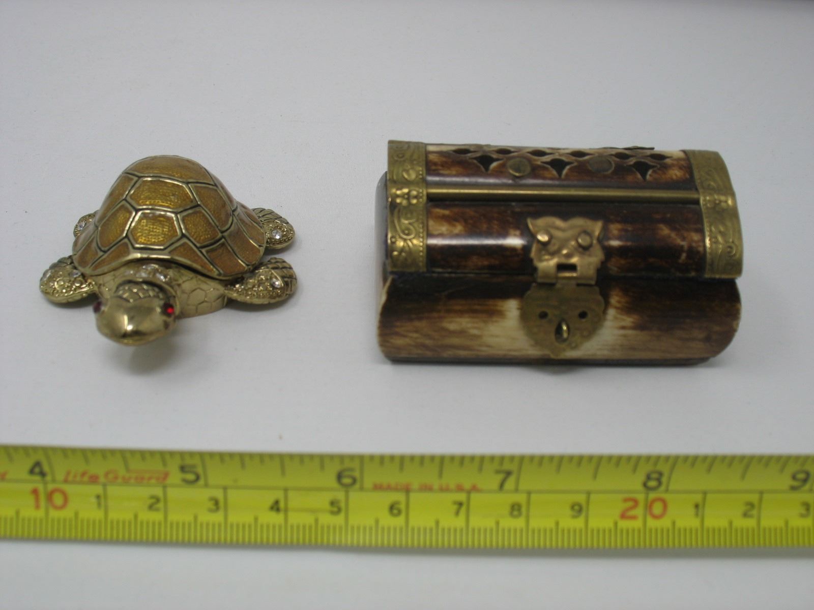 LOT of 2 TRINKET ORNAMENTS - TREASURE CHEST AND SEA TURTLE