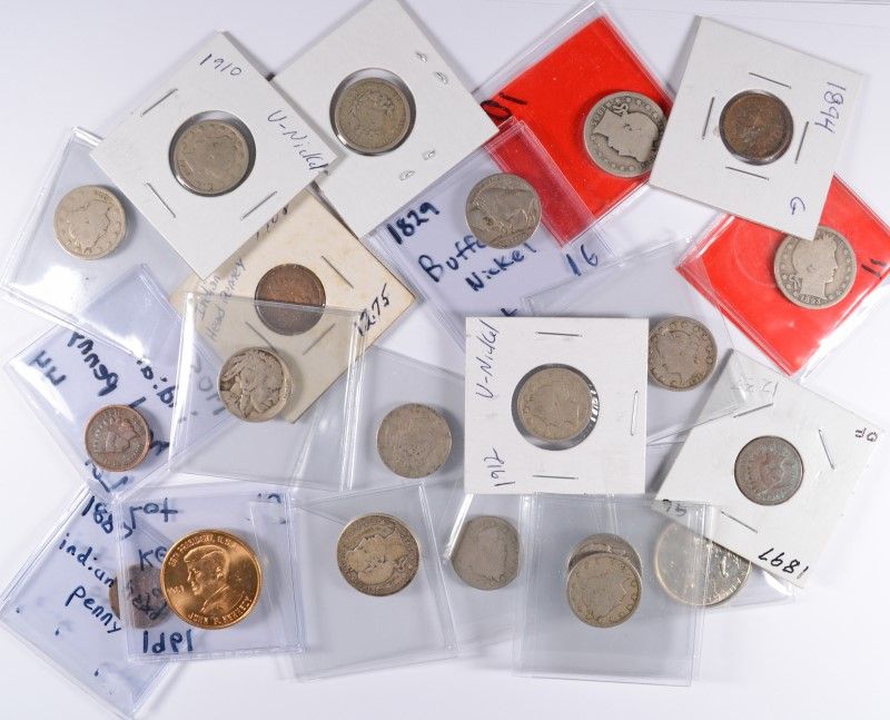 LOT of 21 COLLECTORS COINS, BUFFALO'S, BARBERS, V-NICKELS PLUS