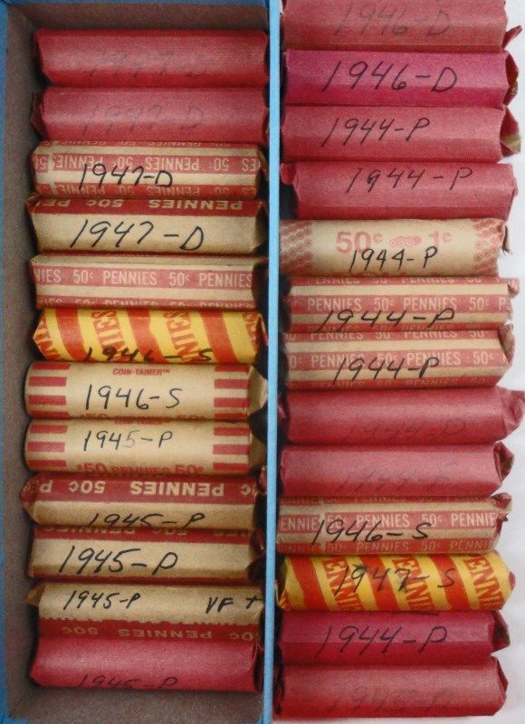 LOT of (25) LINCOLN CENT WHEAT ROLLS, 1944-1947 D & S MINT MARKS INCLUDED