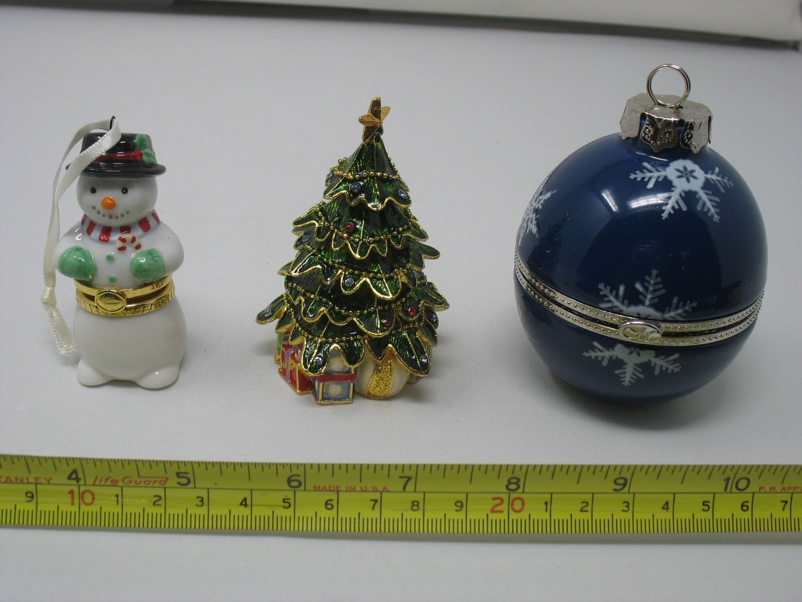 LOT of 3 - TRINKET ORNAMENTS - CHRISTMAS TREE - SNOWMAN - CHRISTMAS BALL