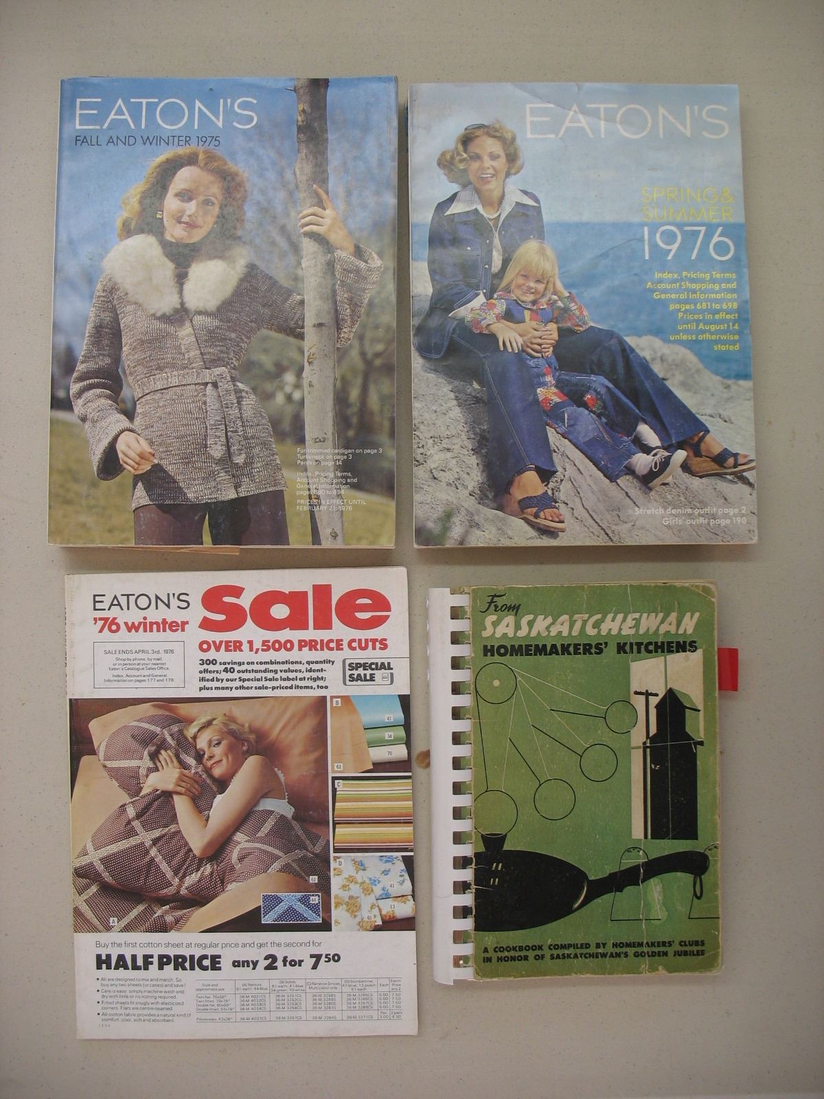 LOT of 4 BOOKS - 1975 & 76 EATON'S CATALOGS & 1955 SASKATCHEWAN HOMEMAKERS COOK BOOK
