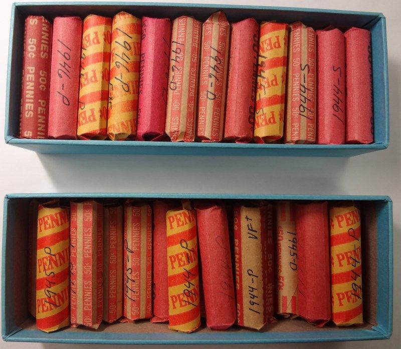 LOT of (42) LINCOLN CENT WHEAT ROLLS, DATED 1944-1948 MINTS S&D INCLUDED