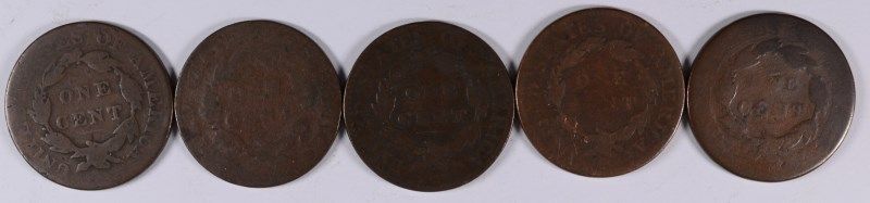 LOT of (5) LARGE CENTS, 1817, 1818, 1819, 1821, 1822, VARIOUS GRADES