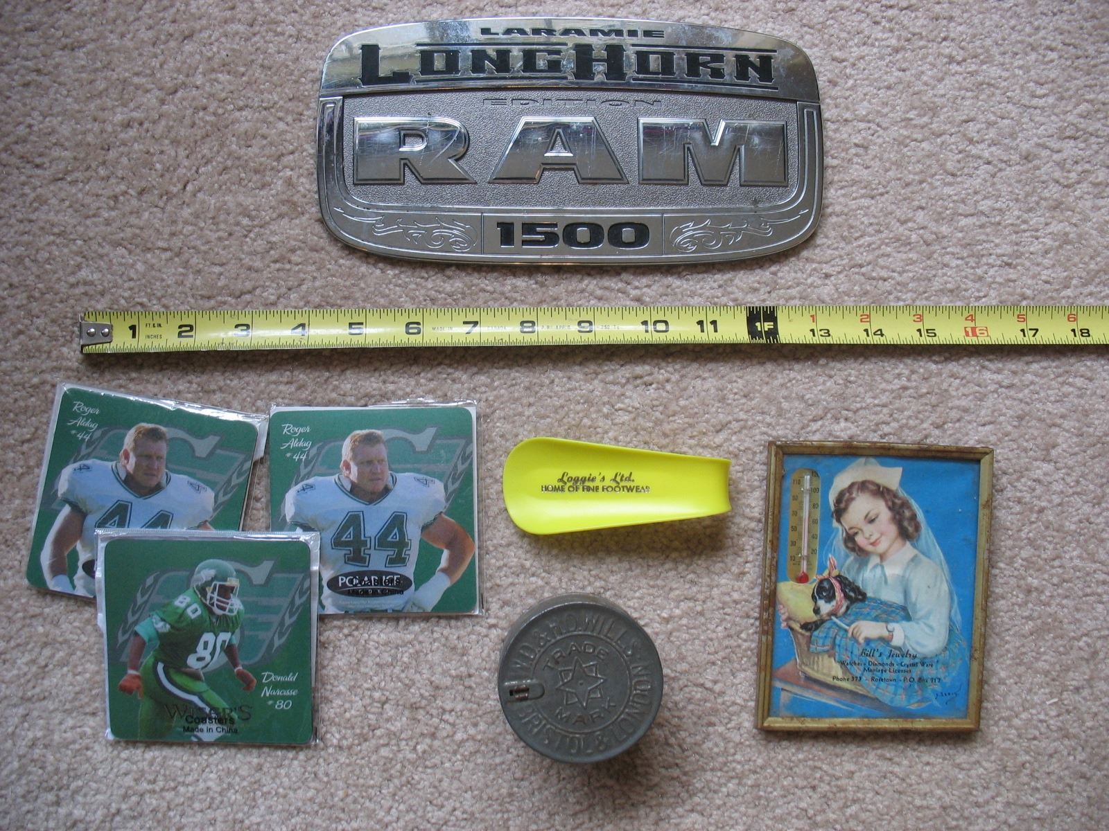 LOT of MISC. COLLECTIBLES - Can, Coasters, Rose town Advertising Picture and Ram Emblem