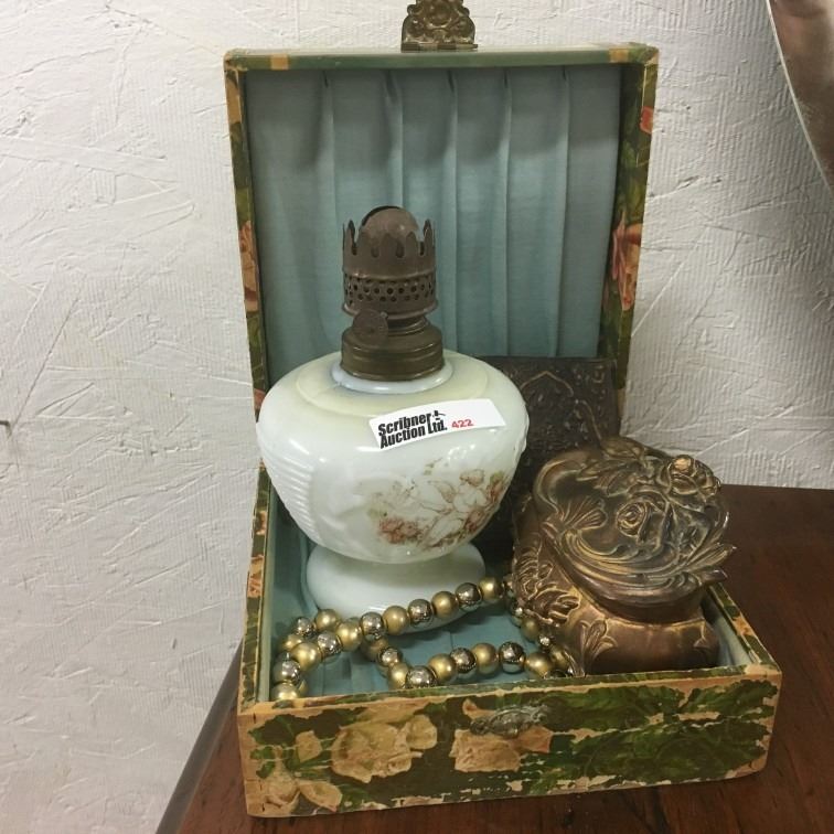 Trinket Box, Oil Lamp Base, Antique Photo Keepsake, Floral Box