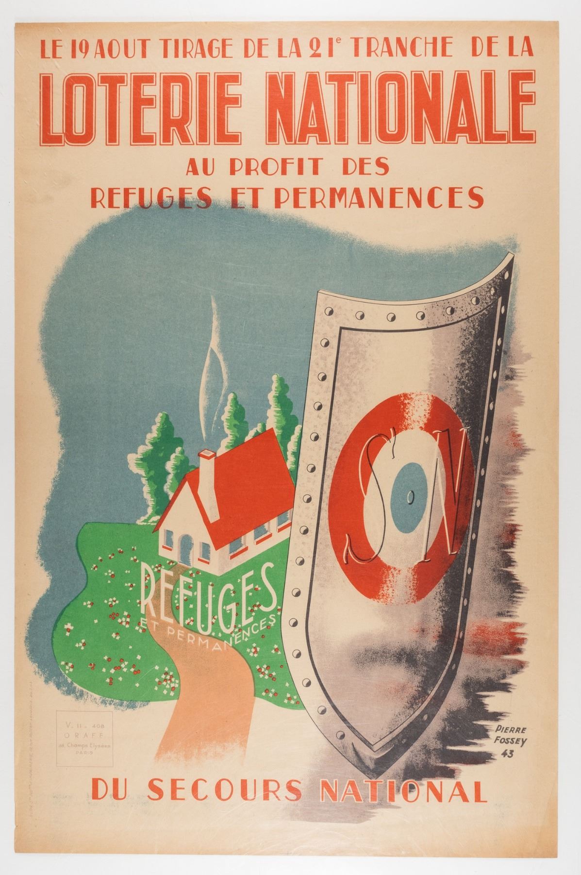 Loterie Nationale - for the benefit of national relief', artwork by Pierre Fossey, (1901-1976), 1943, 23 x 15 inches. Minor creases at bottom left edge.