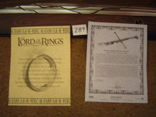 Shards of Narsil, Limited Edition number 4387 of 5000, from the Lord of the Rings Collection, United Cutlery Licensed Reproduction, with plaque, Signed Limited Edition Certificate, Certificate of Authenticity and original packaging.