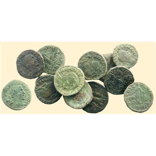 Lot of 12 Roman provincial bronzes from Viminacium, Moesia Superior, including 7 AE 29 of Philip I , 1 of Gordian III, and 1 AE 26 of Trebonianus Gallus; coins with PROVINCIA DACIA reverse include 1 Philip I and another of an empress not readily attributable.