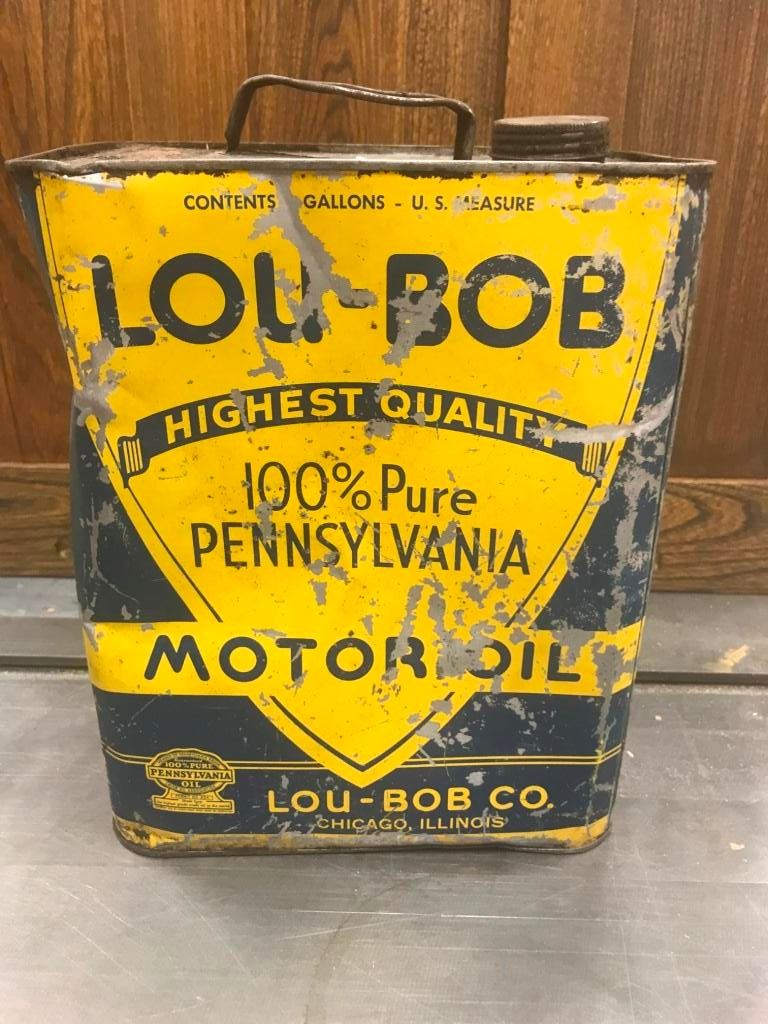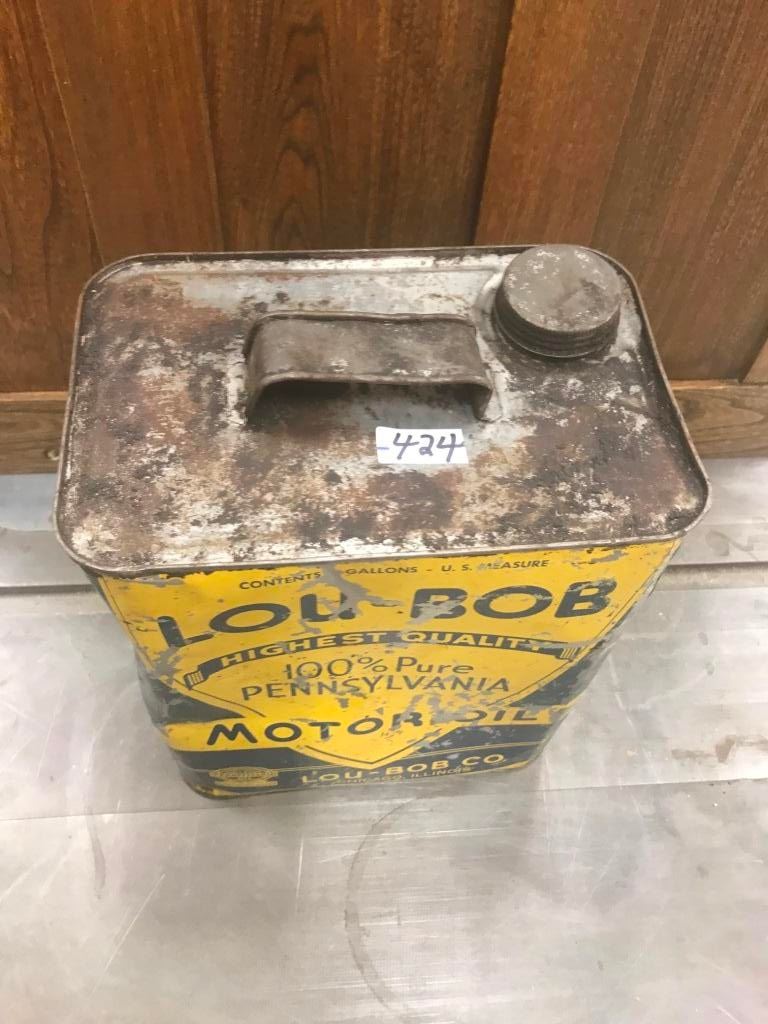 LOU-BOB OIL TIN 2 GAL. RARE TIN, AS FOUND