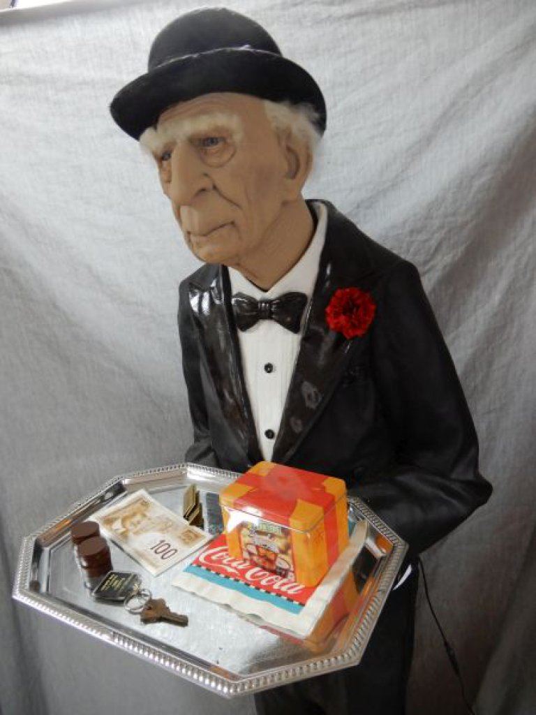 "LOU' THE VIBRATING BUTLER SERVING TRAY & CONTENTS - 21" X 24" X 72" LOCATION: SODA SHOP