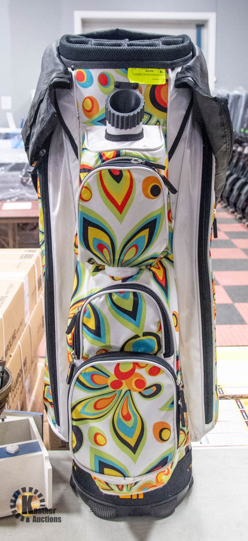 LOUDMOUTH DESIGNER GOLF BAG **ALL ITEMS MUST BE REMOVED BY 5PM SATURDAY, JULY 8ST 2023. ALL REMAINING ITEMS WILL BE SUBJECT TO A $6.00 PER DAY STORAGE CHARGE. ANY ITEMS REMAINING AFTER MONDAY, JULY 24TH, 2023 WILL BE CONSIDERED FORFEITED. NO REFUNDS WILL BE ISSUED FOR FORFEITED ITEMS. TO SCHEDULE A PICK UP APPOINTMENT CLICK HERE