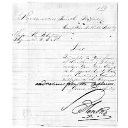 <b>643. LOUIS BLENKER</b> (1812 - 1863) Union brigadier general whose regiment covered the Union retreat at Bull Run, later leading three German brigades under McClellan. Died of injuries from a fall from his horse. Scarce war-date D.S. with holograph addition, 1p. 4to., "<i>Camp Roach Mills</i>", Sep. 22, 1861 to a paymaster sending along blank pay forms to be executed by various officers. Trimmed very slightly at left margin, expertly inlaid, near fine.<b>$250-350</b>