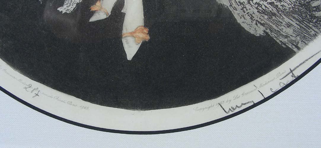 Original Dry Point Etching with hand water color on paper "Little Book". Circa 1925. Hand signed in pencil. Image 18" x 13 1/2", Overall 30" x 25 3/4".