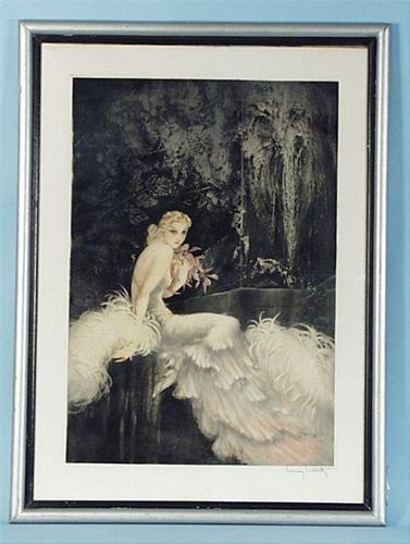 LOUIS ICART (1888-1950) French school. "Les Orchidees". A limited edition dry point etching on embossed paper. Pencil signed lower right, numbered and wind mill marking lower left. Artist's copyright marking dated 1937, top left. 28" x 19 1/2". Illustrate