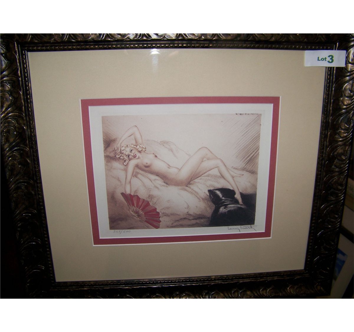 LOUIS ICART  LA SIESTA  LIMITED ED ITION #267/500. CUSTOM FRAMED W/ C.O.A FACSIMILE SIGNED