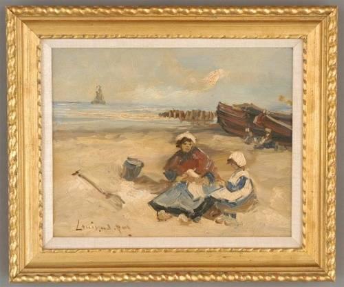 1 LOUIS VAN DER POL 9 1/2"X12" o/b beach scene, signed ll, ex estimate 800-1200
