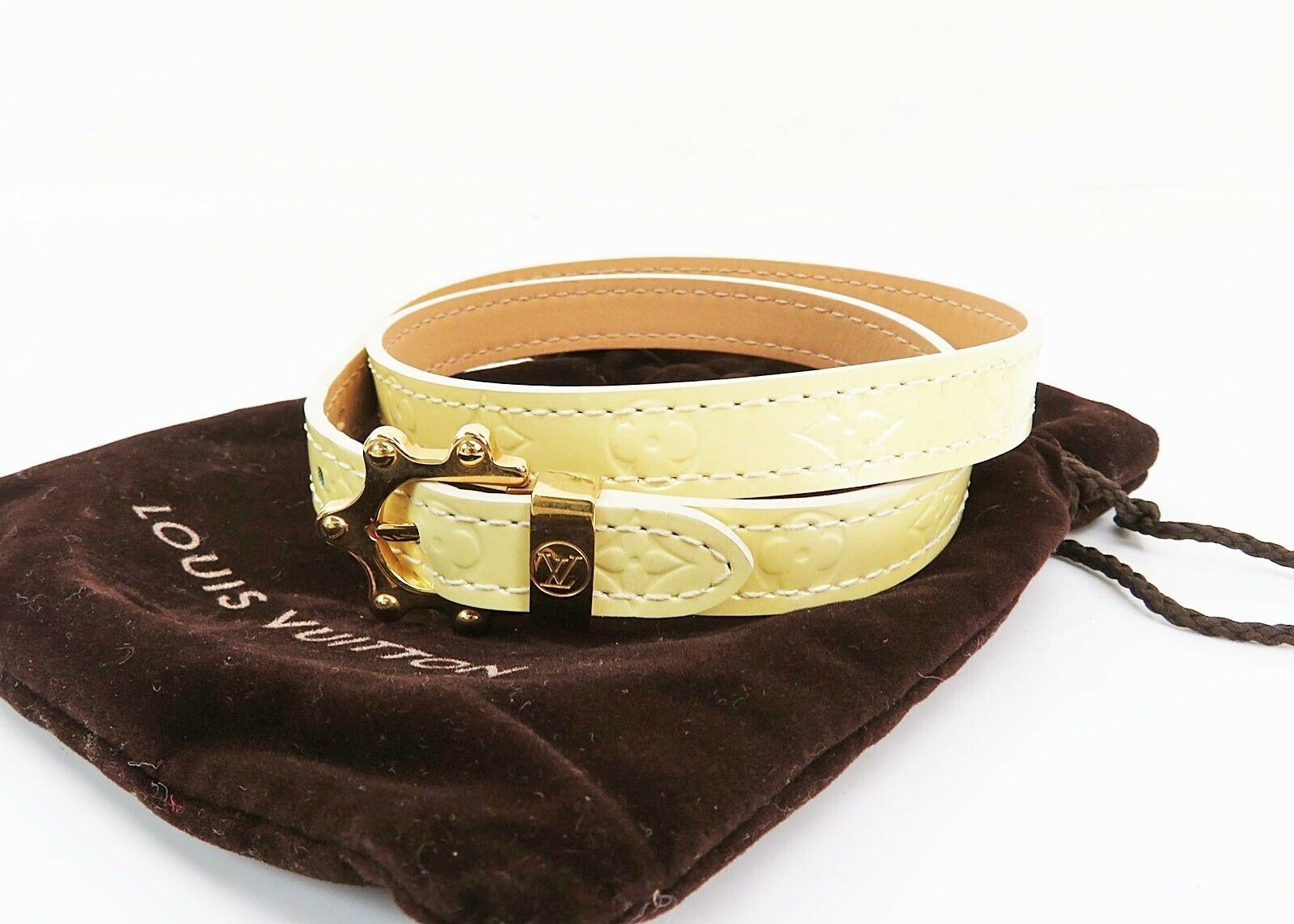 Description: Pearl White Patent Leather Vernis Triple Tour Bracelet