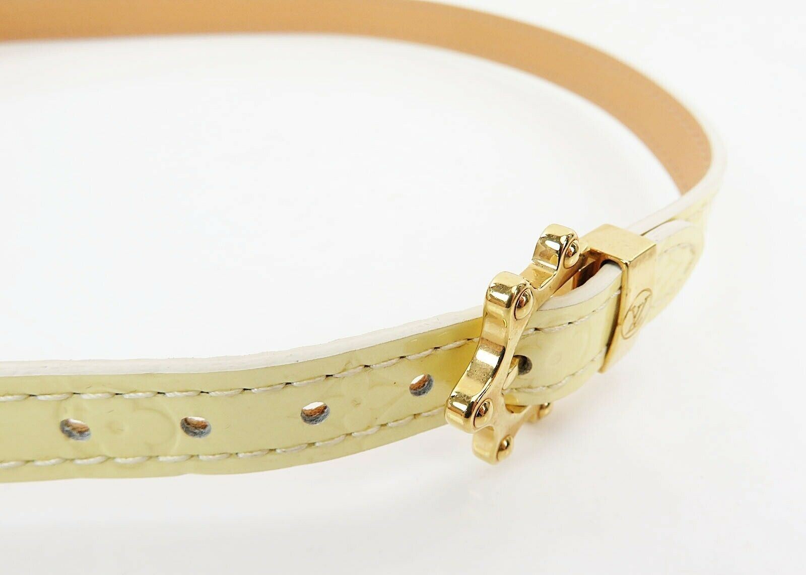 Description: Pearl White Patent Leather Vernis Triple Tour Bracelet