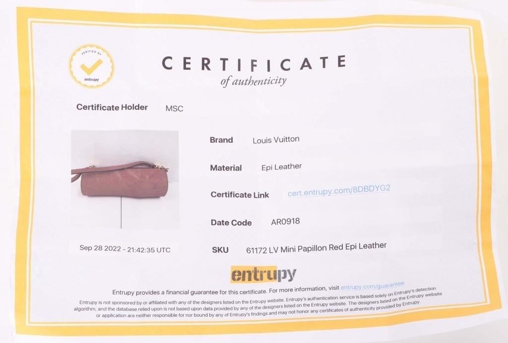 Louis Vuitton red Epi mini Pepillion pochette bag. Comes with a certificate of authenticity.