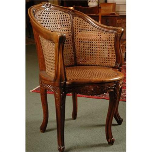 LOUIS XV 19TH CENTURY FIVE LEGGED CHAIR, HAND CANED,CARVED CURVED BACK, EXCELLENT CONDITION.