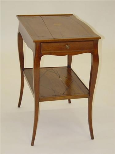 LOUIS XV STYLE FRUITWOOD 1 DRAWER SIDE TABLE W/ LINE & FLORAL MARQUETRY INLAY, RAISED EDGE TOP, LOWER TIER SHELF, SHAPED APRON & CABRIOLE LEGS (26" T X 16" W X 24" L) - WEAR, LOSSES & IMPERFECTIONS