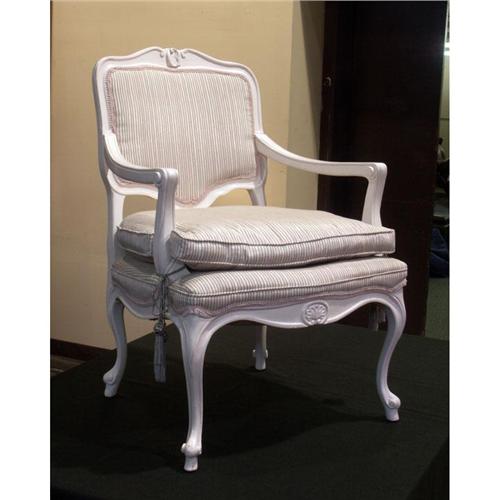 ARMCHAIR: Louis XV style provincial white painted armchair, carved and molded frame, cabriole legs.