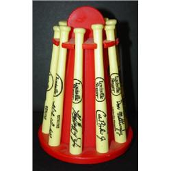 PLASTIC LOUISVILLE SLUGGER COIN BANK. Includes miniature bats from all-stars baseball players from the mid to late 1980s.