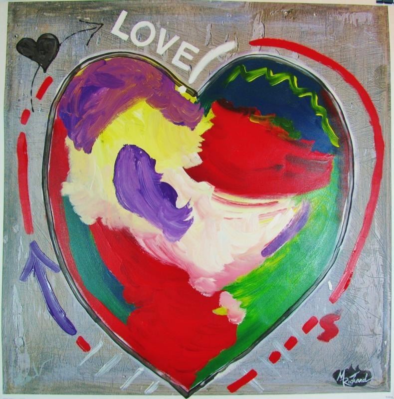 Max Richards | Title of Art: Love Heart | Medium: Hand Signed by the Artist Original Painting on Canvas | Edition #: Original | Unframed Size: 31 x 31 inches | Offered Unframed. Framing Presentation are often shown for concept only. Read description: If framed, framed size will be given | Value: $ 1000