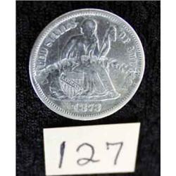 Love token from Asbury Park, N/J/ 1873. Seated Liberty Dime. Good condition.