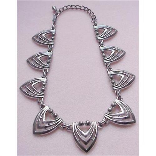 BEAUTIFUL FASHION JEWELRY SILVER TONE NECKLACE,Made in ART DECO STYLE, as per picture, Measuring about 15" long, Clasp works fine and the necklace is in excellent condition, THANK YOU FOR LOOKING!