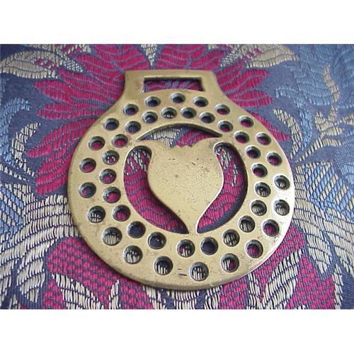 Horse brass are the brass ornaments fixed to the vertical leather chest strap or other parts of a horse's harness. Horse owners from the late 19th Century onward have shown their pride in their horses by adorning harnesses with these frequently ornate and highly symbolic attachments. They make a fascinating collection, and remain hard enough to find to be highly valued and very much sought after. They originated in England as Gypsy amulets attached to horse tack in the hope of warding off evil spirits. We are excited to offer for sale from a private collection some truly unique and beautiful pieces, all are original-NOT recent recasts. Most date from about the 1880-90s are in original condition, we have not polished them, but left the original patina as the collector had them. These are highly decorative and make fascinating gifts! This particular horse brass has lovely openwork with a central tulip like flower in the centre, very interesting authentic old horse brass that measures about 3 ¾ inches by 3 ½ inches, about 1 inch high. Fabulous antique horse brass!