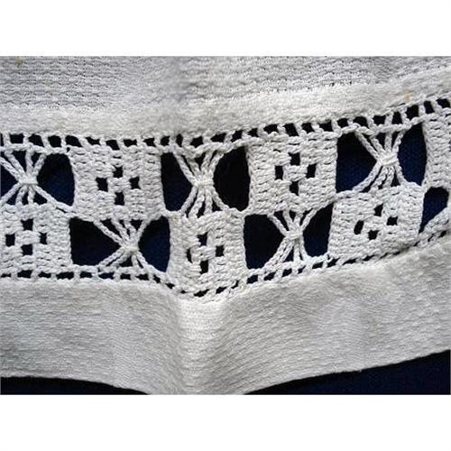 PRETTY ANTIQUE WHITE, WHAT IT SEEMS TO BE DAMASK WITH PATTERN SHOWING LOVELY BOWS AND HAND MADE LACE INSERT NEAR THE BORDER, as per images - Very fine used condition, measuring about 14 1/2" x 24 1/2" - US Buyer to pay 4.00 for shipping plus insurance.THANKS.