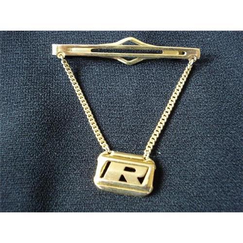 VERY HANDSOME TIE BAR CLIP, WITH CHAIN AND PROMINENT MONOGRAM - R - as per images, MADE AND SIGNED BY ANSON, Excellent used condition, Measuring about 2 1/4" long, US Buyer to pay 7.00 for shipping plus insurance.THANKS.