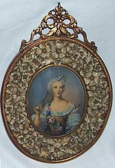 CARVED FLOWERS FRAME HANDPAINTED MINIATURE PORTRAIT. This is a wonderful antique picture frame made of bronze with carved flowers. The handpainted miniature portrait is signed at right. Measures approx 6.25in x 4.25in