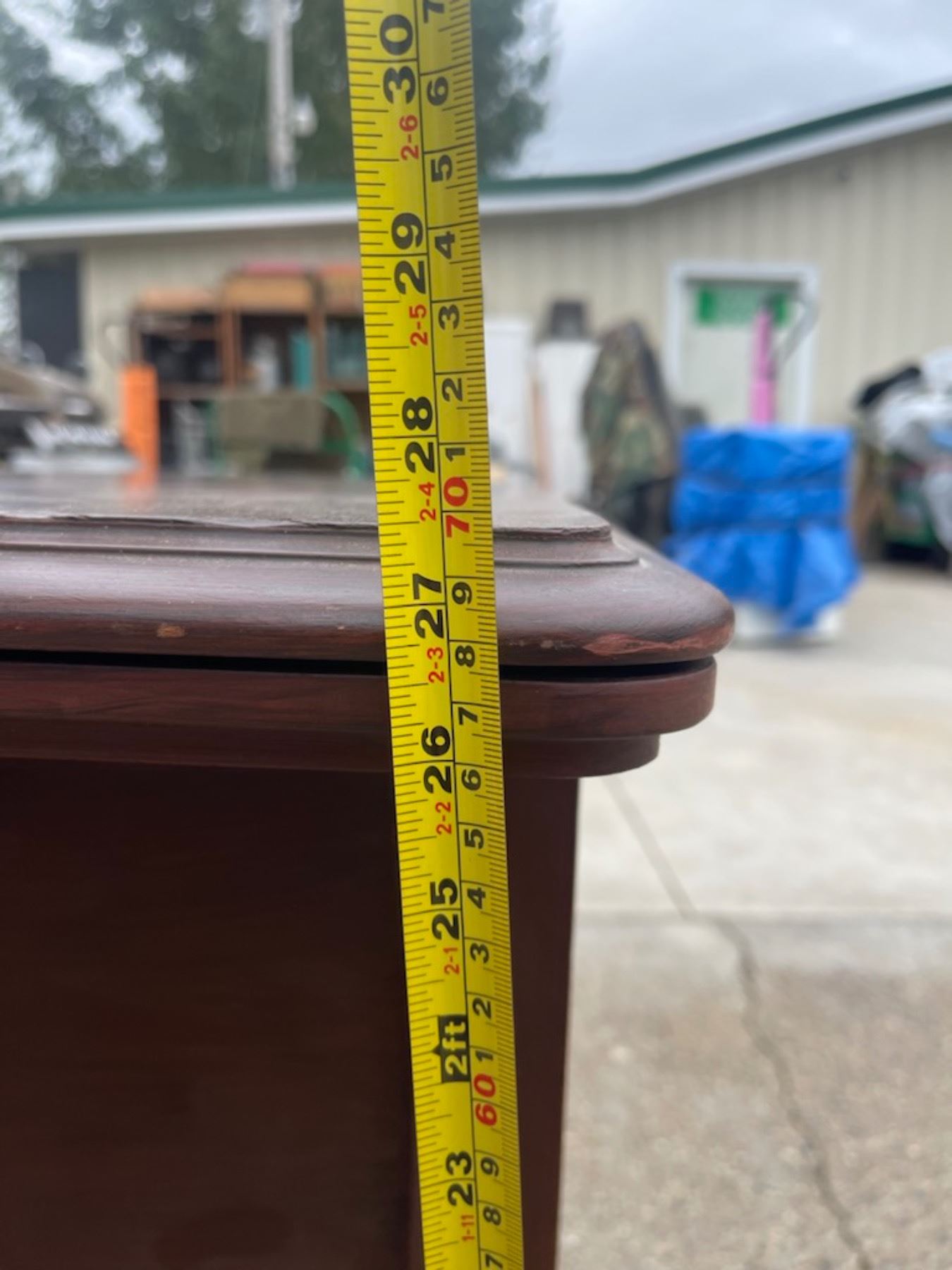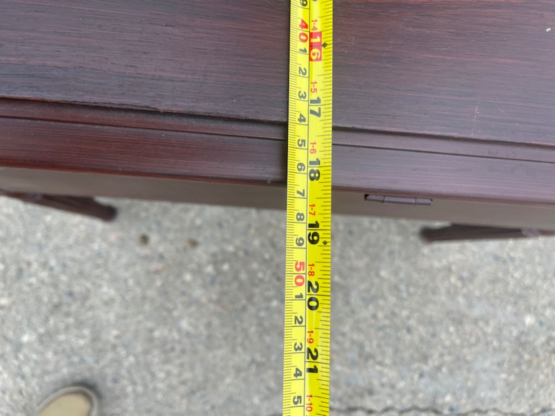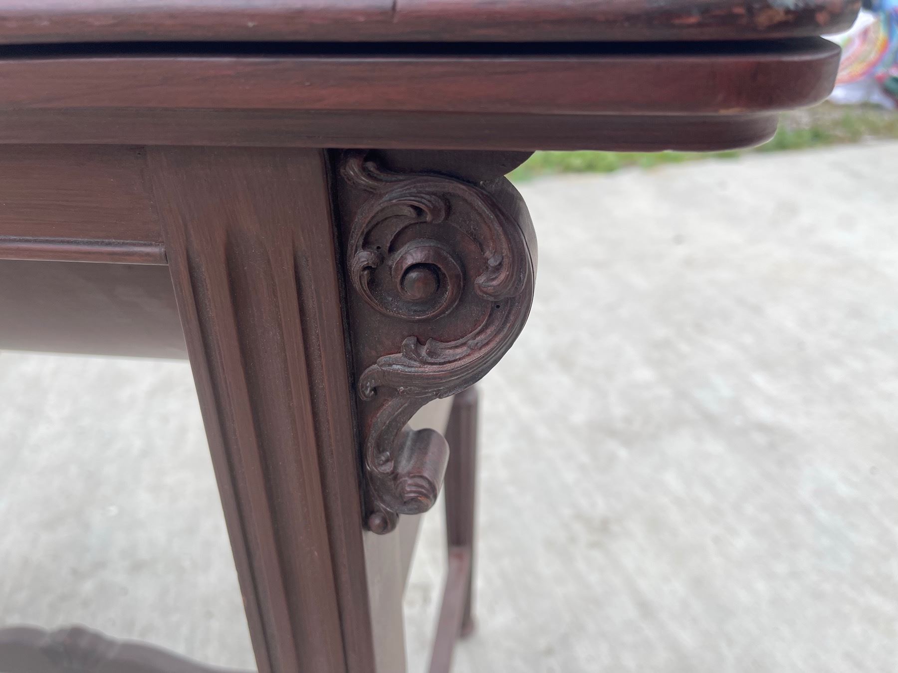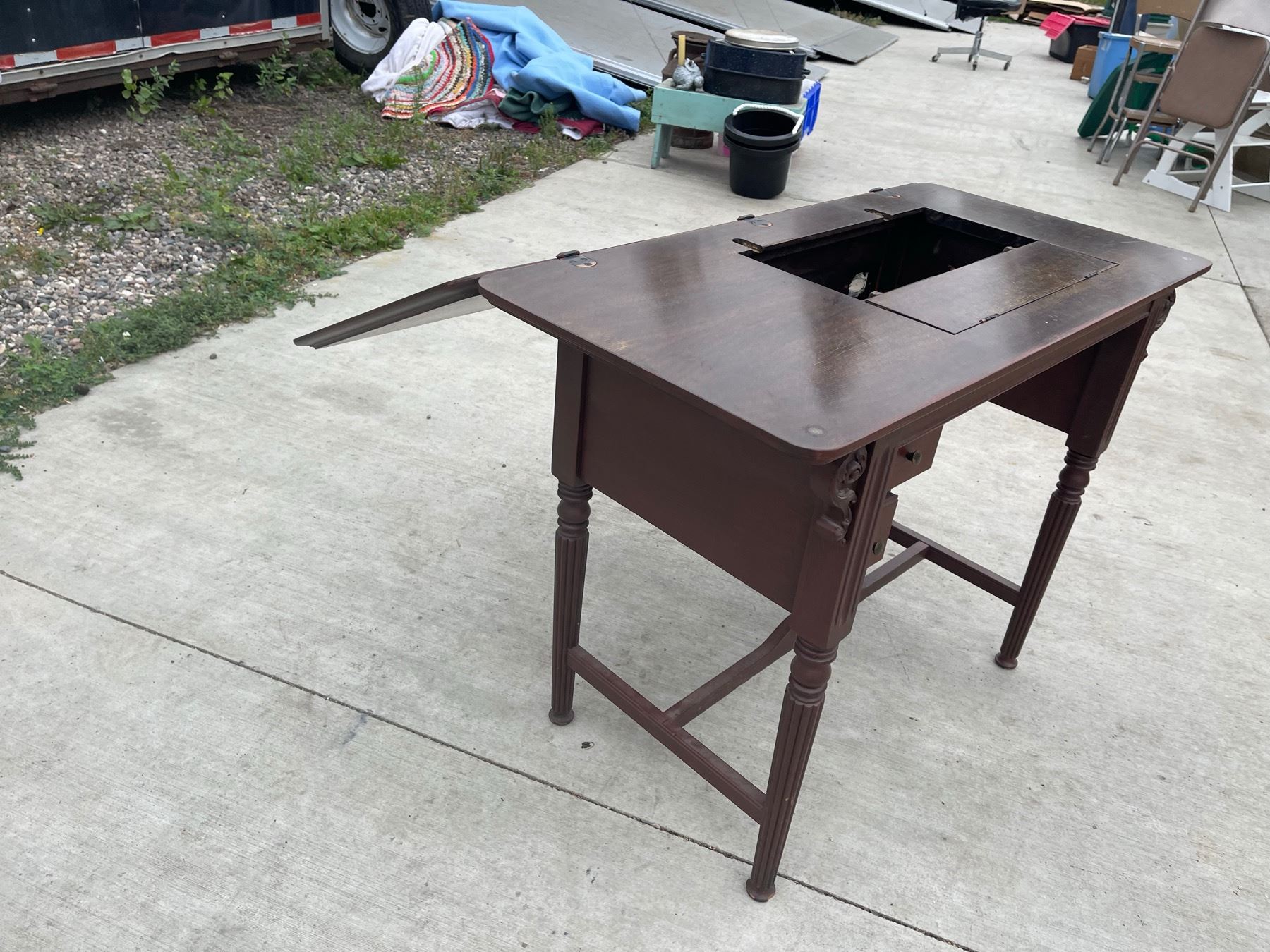 THIS IS A LOVELY DESK, BUT IT WAS A SEWING TABLE; CHECK OUT THE LOVELY CARVED ACCENTS ON THE SIDES AND THE CROSS-BEAM SUPPORT; THE SPACE WHERE THE MACHINE WAS STORED IS ENCLOSED AND COULD BE USED FOR STORAGE; IT IS UNIQUE, LOVELY, AND FUNCTIONAL