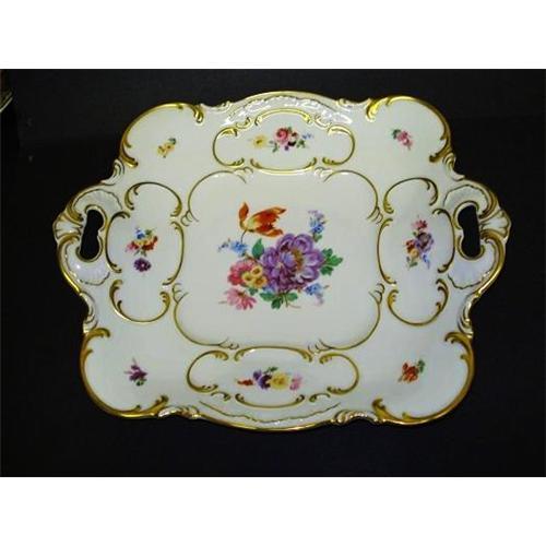 </font></strong>LOVELY LARGE SERVING DISH, MADE IN BAVARIA - GERMANY, DECORATED IN FLORAL PATTERN, WITH RAISED PATTERN - AND HAND PAINTED IN BEAUTIFUL, RICH GOLD,THIS DISH HAS 2 OPEN HANDLES, as per images - Measuring about 12 1/2 inch X 10 3/4 inch x 2 1/4 high, Mint, never used condition, no chips or cracks, US Buyer to pay 12.00 for shipping plus insurance.THANKS.</font>