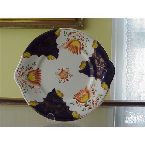 <table width="100%" border="0" cellspacing="0" cellpadding="4"><tr><td><em> </em></td></tr><tr> <td width="100%"> Beautiful and ever so striking is this antique Gaudy Welsh handled cake plate! This is the well-loved TULIP pattern, such pretty hand painting adorned with pink lustre painting. The cake plate has self-molded handles and measures about 10 inches across. It?s in exceptional condition-no chips, cracks, discoloration, and just ever so slight wear to the tulips, definitely not detracting. It is a gem for the Gaudy Welsh collector or early china collector. It would make a most striking appearance in your Welsh cupboard or plate rail. </td></tr><tr> <td> </td></tr><tr> <td>Reference #: GAP876</td></tr><tr><td>Condition:Excellent!</td></tr><tr><td>Year:1850s</td></tr><tr><td>Title:LOVELY GAUDY WELSH Cakeplate Tulip</td></tr><tr><td>Location:WA</td></tr></table>