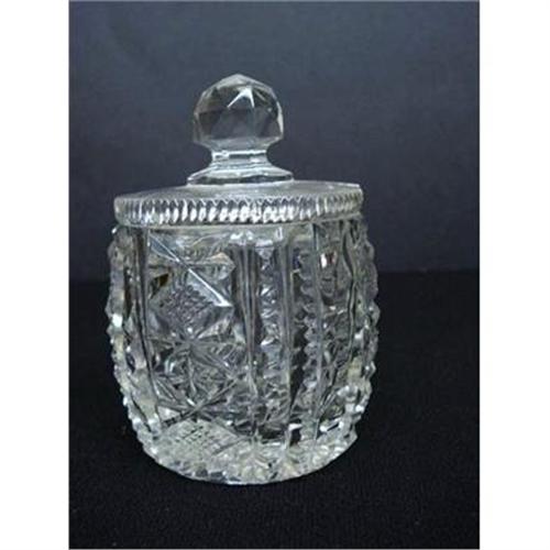 <tr><td>Title:LOVELY & INTRICATE CUT GLASS MARMALADE POT</td></tr>