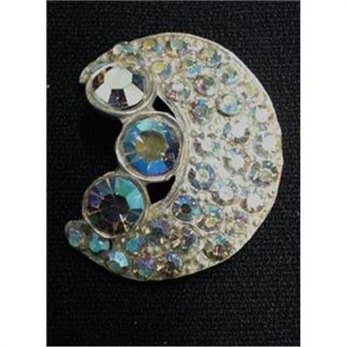 THIS IS BEAUTIFUL VINTAGE BROOCH, ENCRUSTED WITH LOVELY BLUE SHADE IRIDESCENT STONES, IN THE SHAPE OF THE HALF A MOON, as per images - Excellent condition - Measuring about 1/1/2" x 1", US Buyer to pay 7.00 for shipping plus insurance.THANKS.