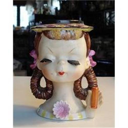 PRETTY ANTIQUE HEAD VASE, DEPICTING LOVELY YOUNG GIRL - as per images IT STANDS 5" HIGH, VERY GOOD CONDITION BUT ON A CLOSER INSPECTION IT APPEARS TO ME THAT HER BANGS HAVE BEEN REPAIRED AND HER LEFT EYELUSH HAVE TINY NICK, US Buyer to pay 8.00 for shipping plus insurance.THANKS.