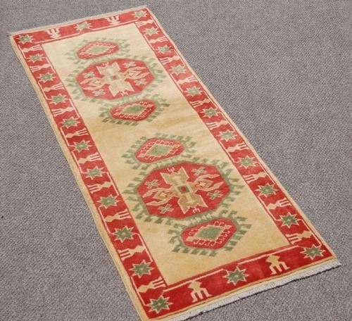 LOVELY NICE COLORS HAND MADE TURKISH KONYA RUG, SIZE 2.6 X 6.9 FEET, MADE OF ALL NATURAL, VEGETABLE DYE, HAND WOVEN, WORSTED WOOL PILE ON COTTON FOUNDATION. KONYA RUGS ARE ONE OF THE LARGEST AND MOST IMPORTANT GROUPS OF THE CENTRAL ANATOLIAN RUG GROUP. THE TURKMAN INFLUENCE IN OLDER KONYA RUGS IS VERY STRONG. IN FACT THE OLDER THE RUG GENERALLY THE STRONGER THE USE OF TURKMAN ICONOGRAPHY. HAND WOVEN IN TURKEY.
